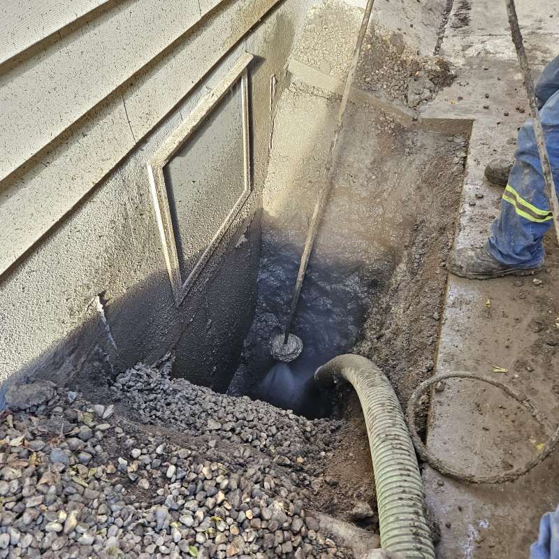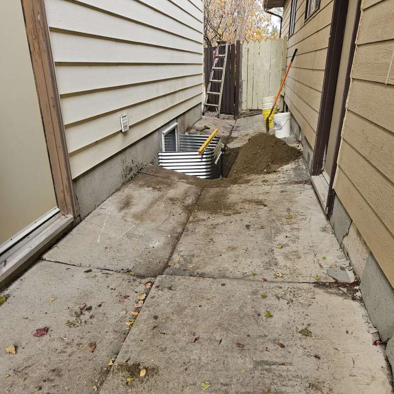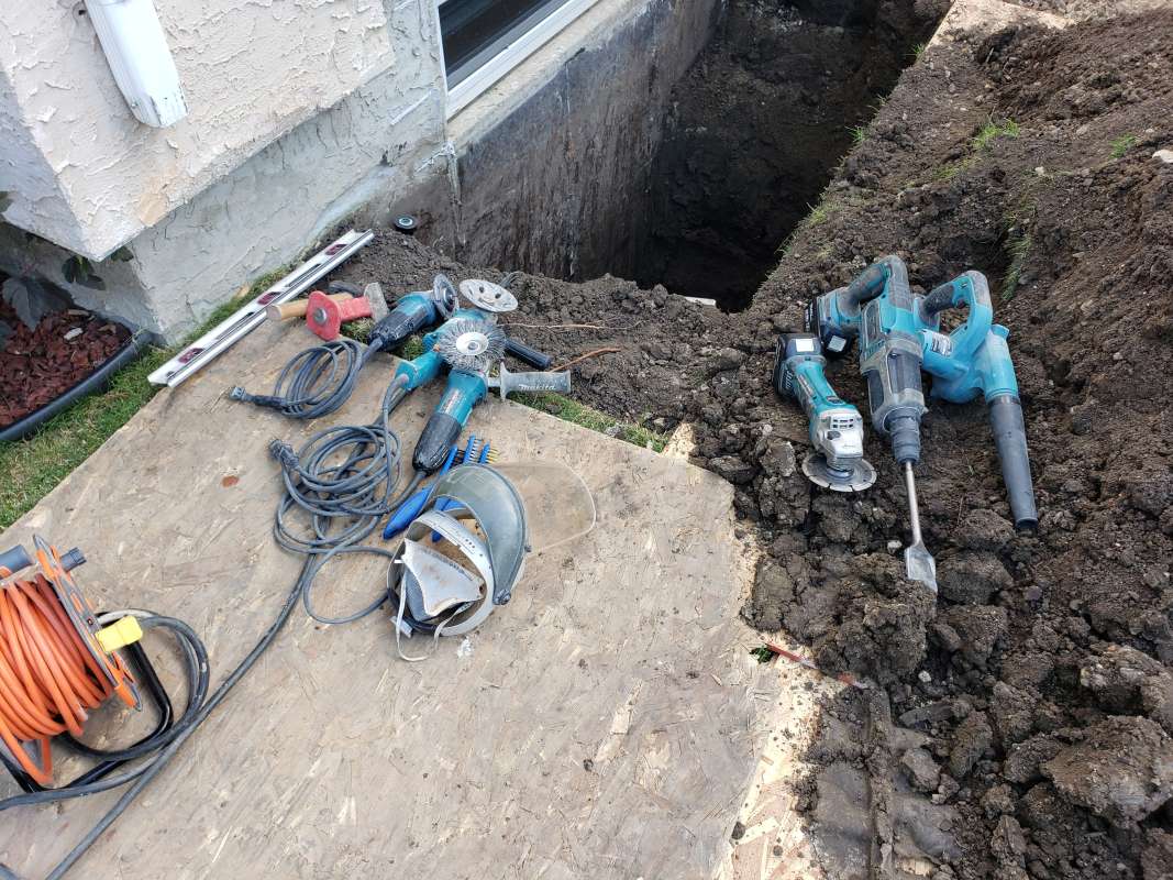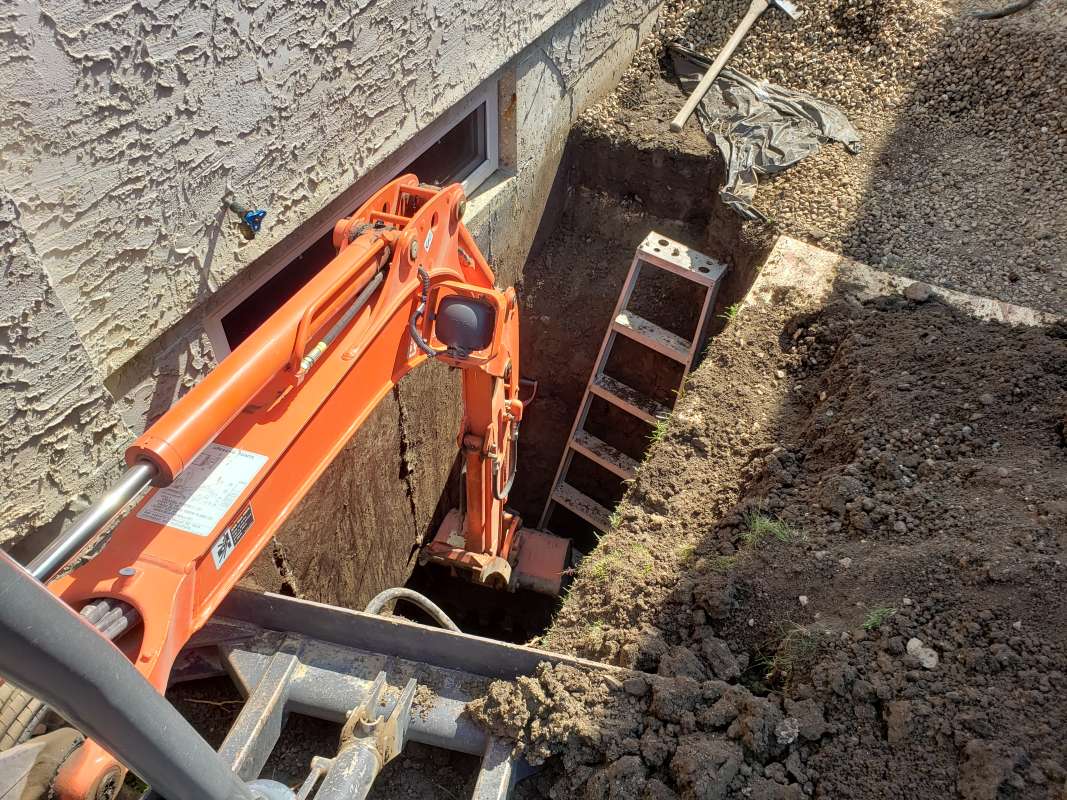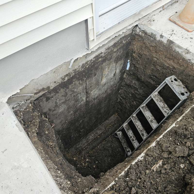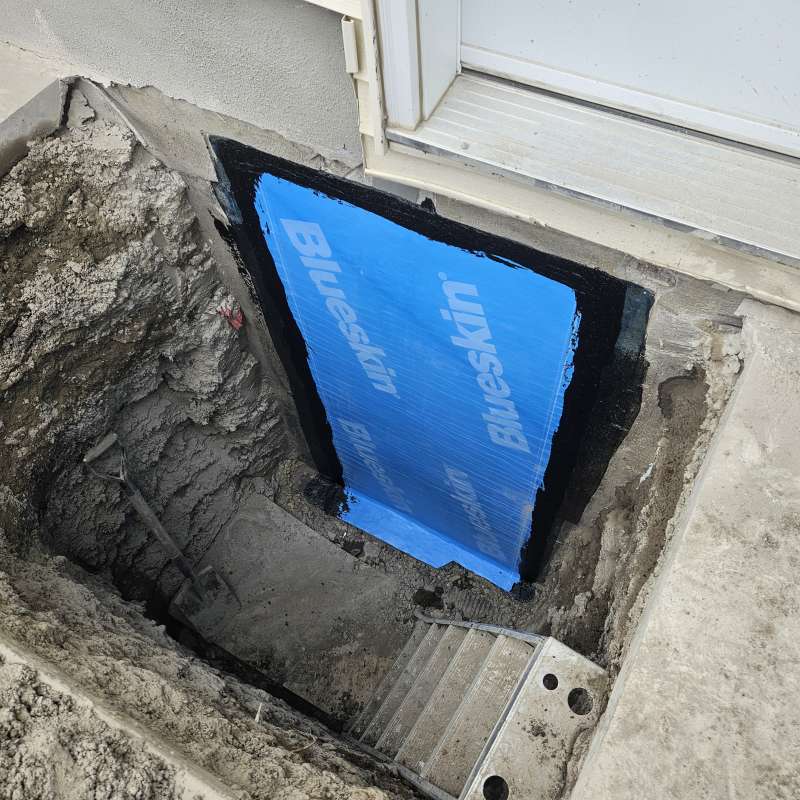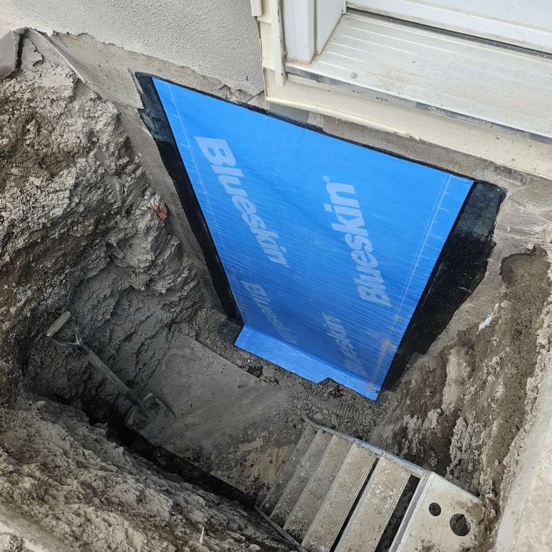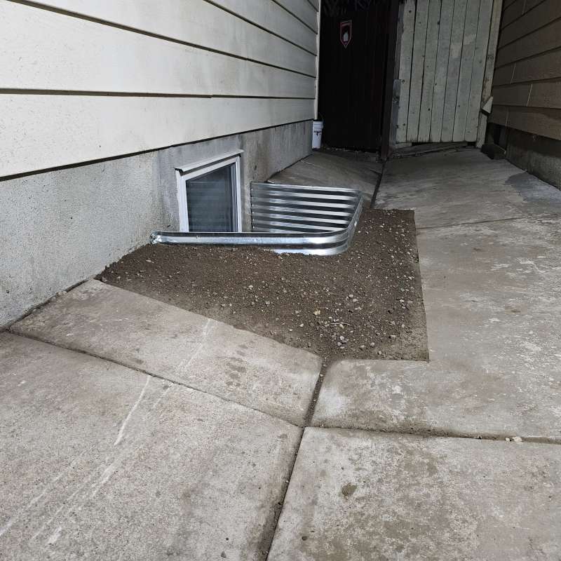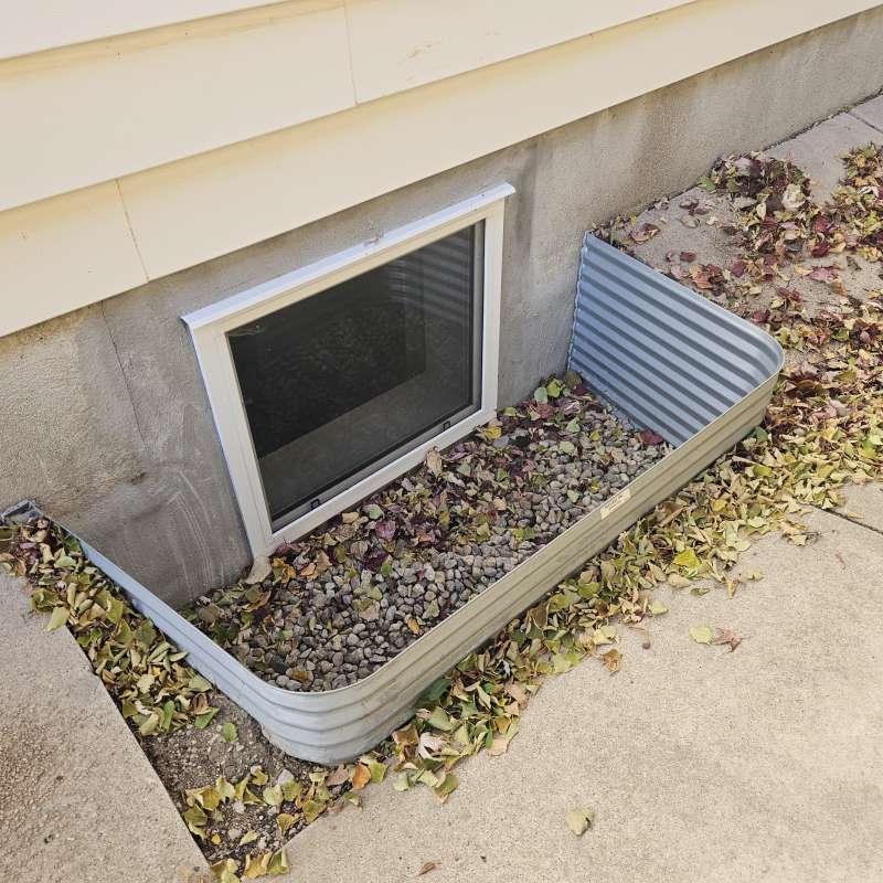 A proper weeping-tile system, located at the footing of the foundation, is a pre-requisite for this type of repair or upgrade. The window area is excavated down to the existing weeping-tile. A vertical section of weeping-tile is “T”-ed into the main weeping-tile below. The new vertical drain stack is securely anchored to the wall to prevent movement, a drain cover and geotextile wrap is installed, and the excavated area is backfilled. The new window-well will be installed and secured to the foundation around the window, and decorative landscape rock is placed inside the window-well, concealing the top of the new drain cover. A detailed photo USB drive of the repair work is supplied to all customers.