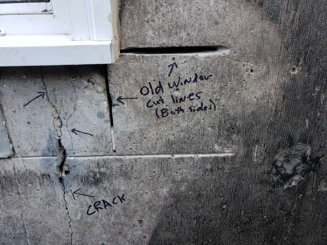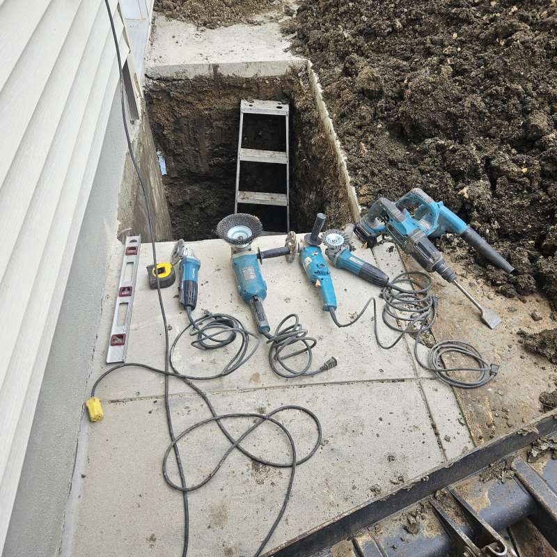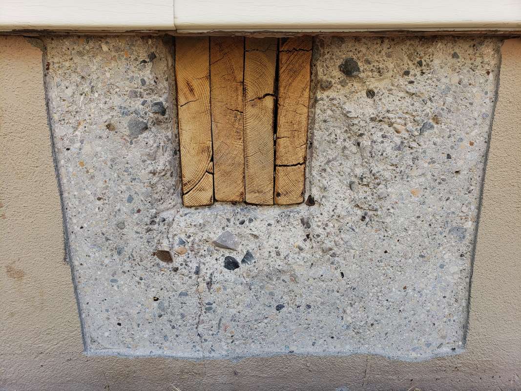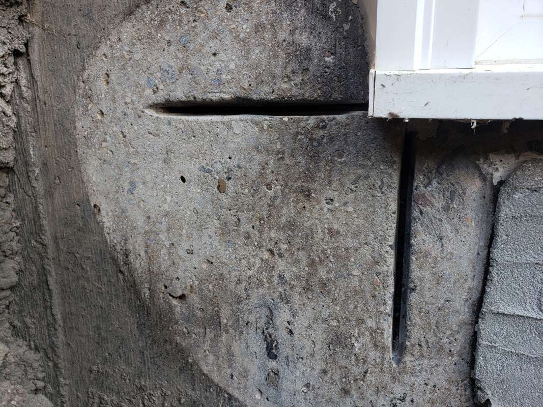 - Holes drilled in the concrete foundation for utilities which are below grade.
