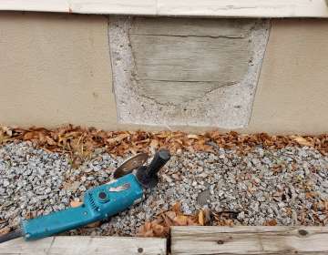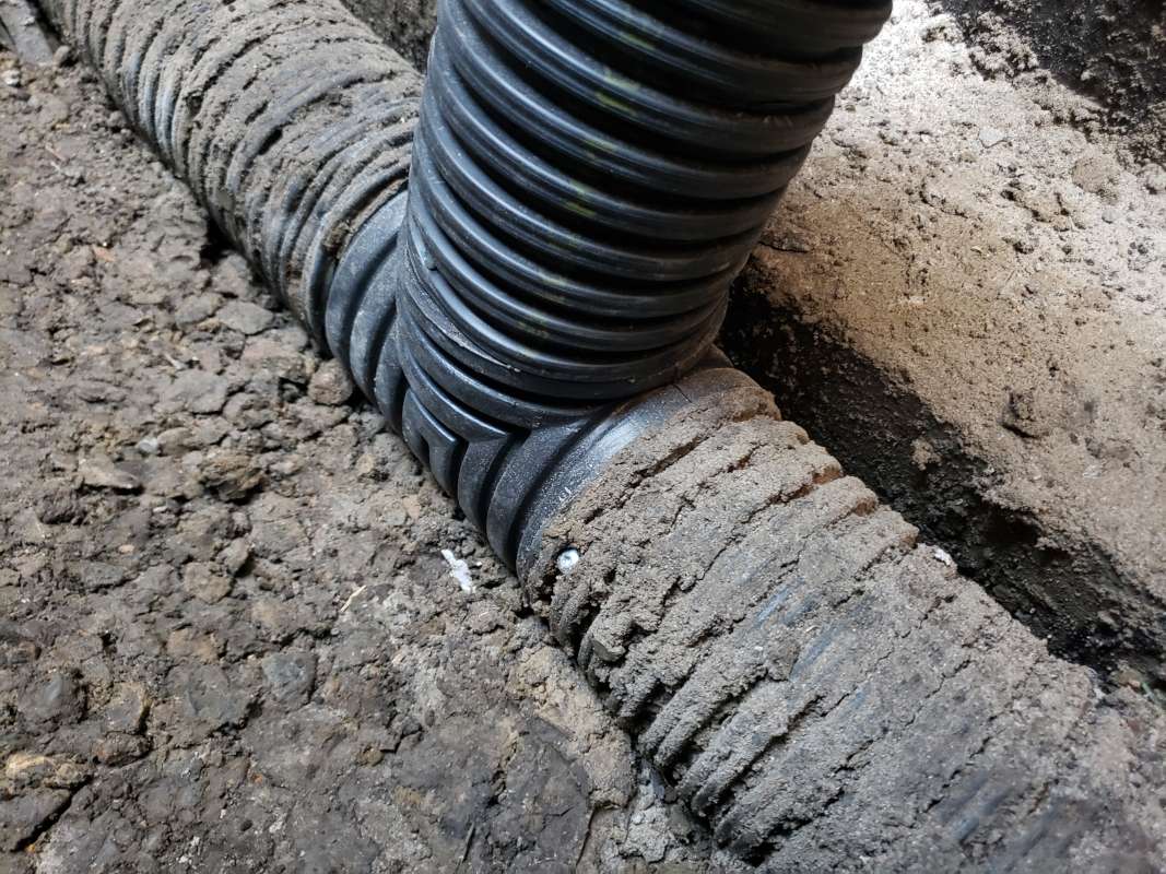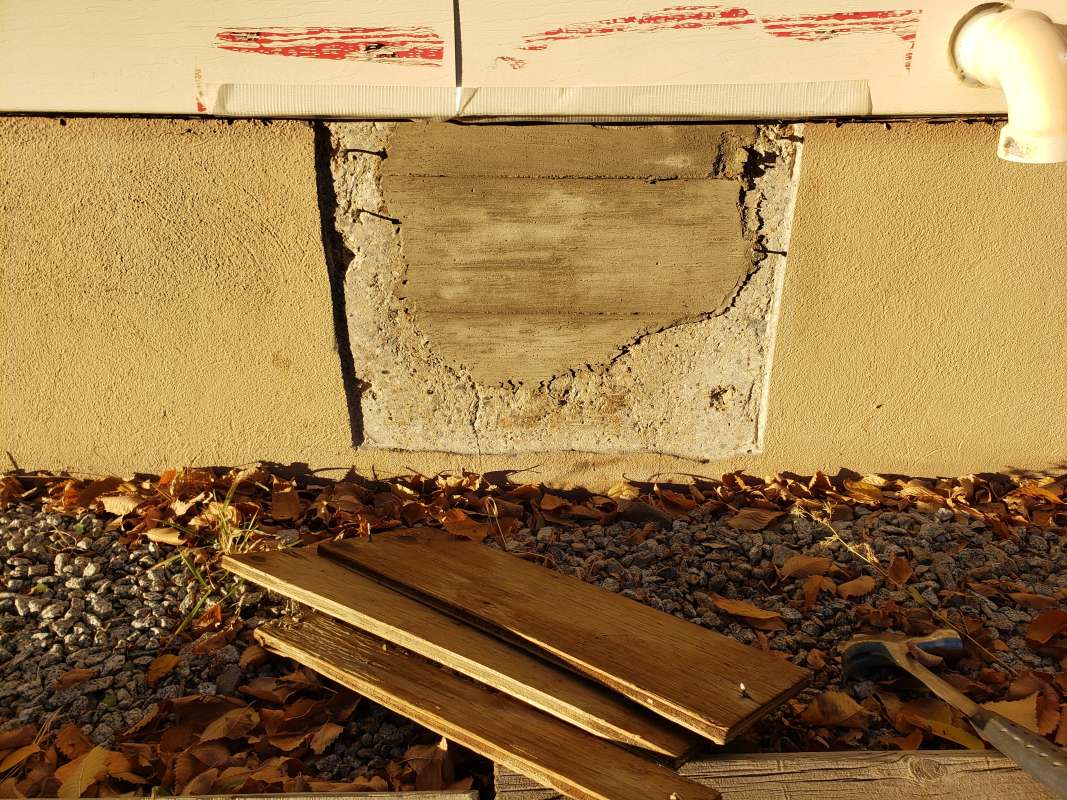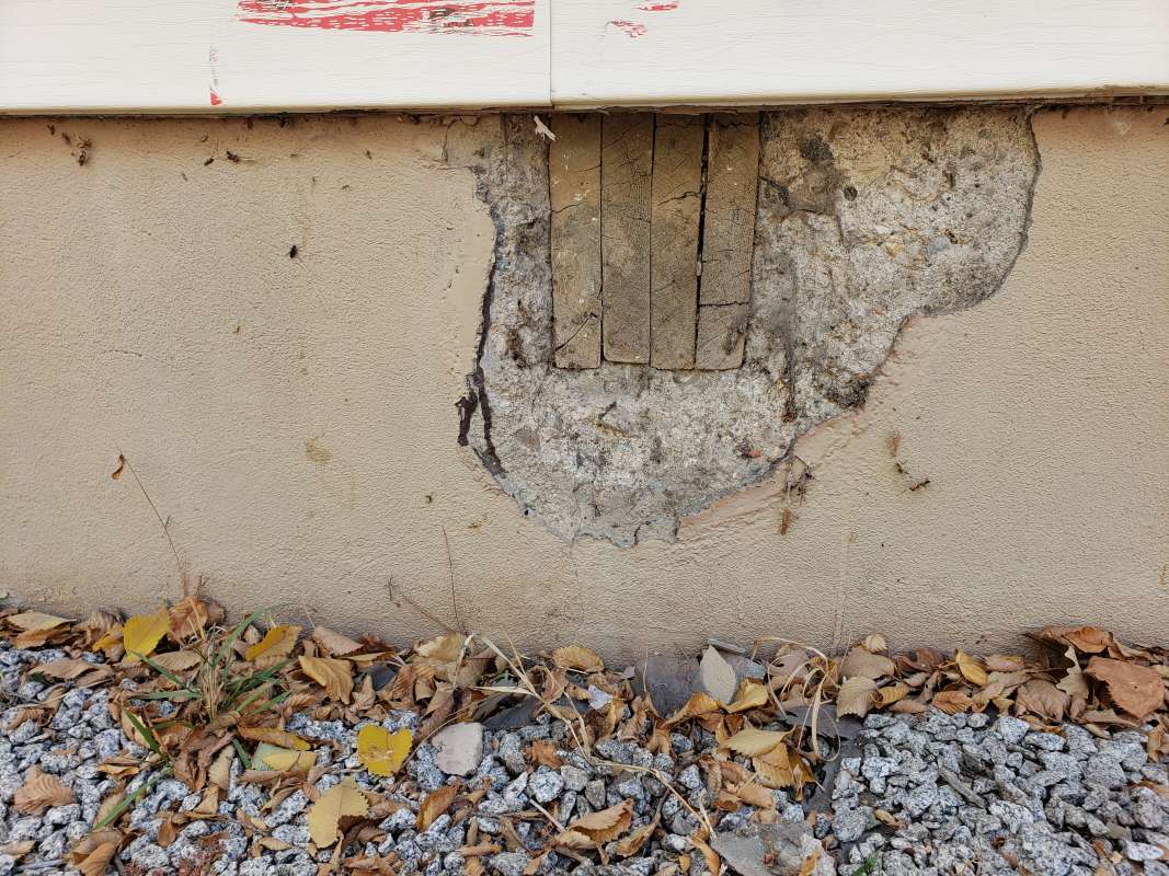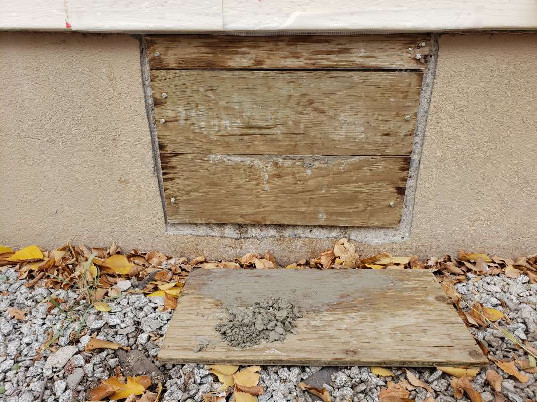 - Holes drilled in the concrete foundation for utilities which are below grade.