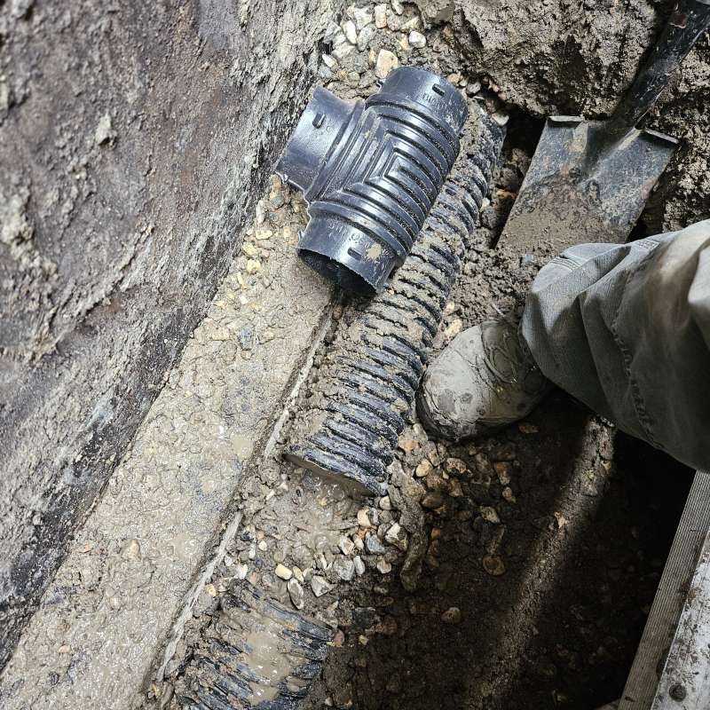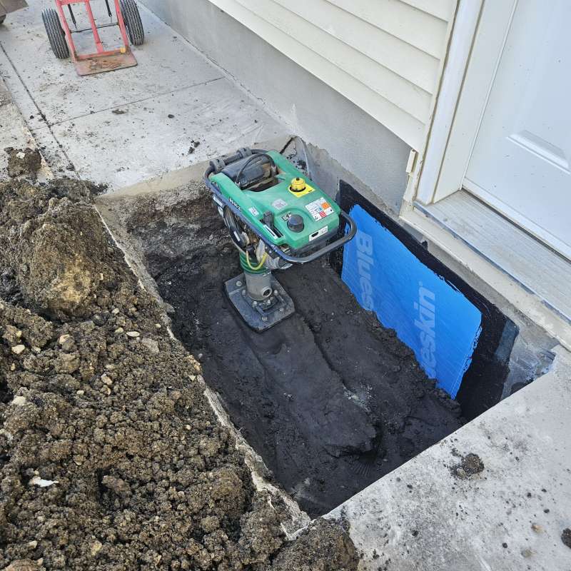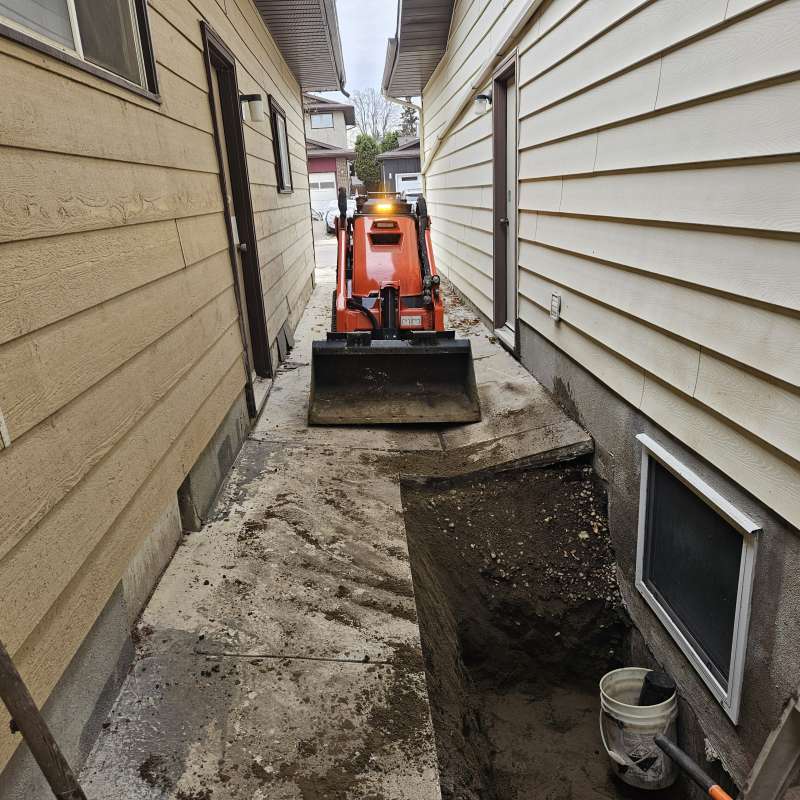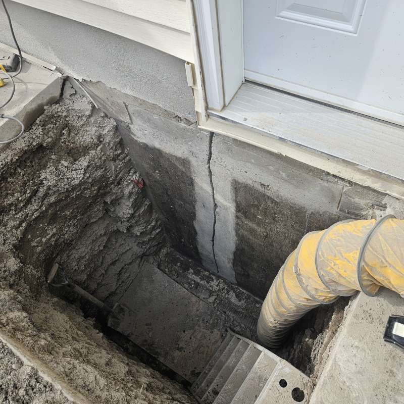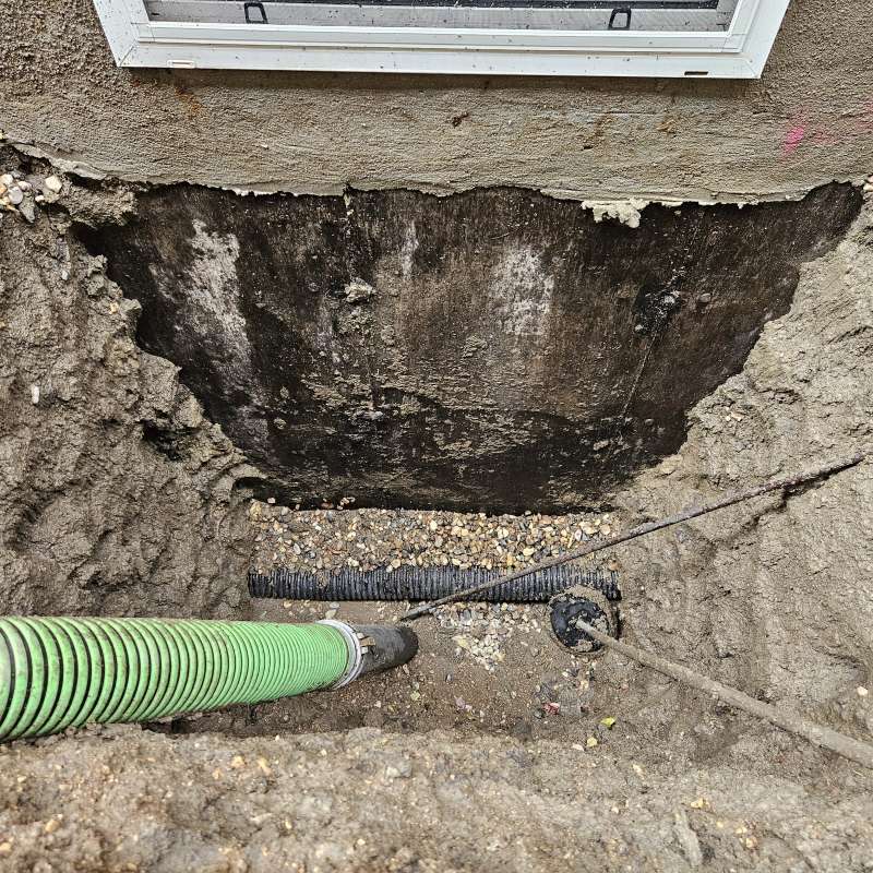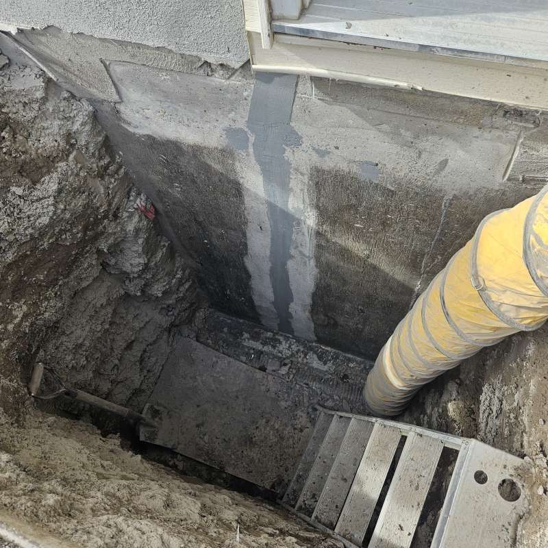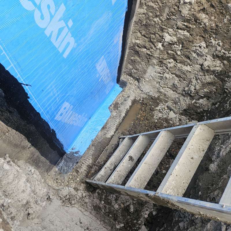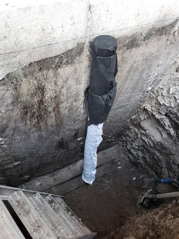 Involves the excavation of a specific exterior foundation wall(s), wall cleaning and preparation of individual cracks, sealing the cracks with an epoxy or polyurethane injection, then the installation of a waterproof membrane over the entire foundation surface, followed by the installation of secondary dimpled membrane or drain board. Finally, filter-covered weeping-tile and drain stone are installed or replaced depending on the situation of the structure. All excavated areas are backfilled and first grading completed. A detailed photo USB drive of the repair work is supplied to all customers.