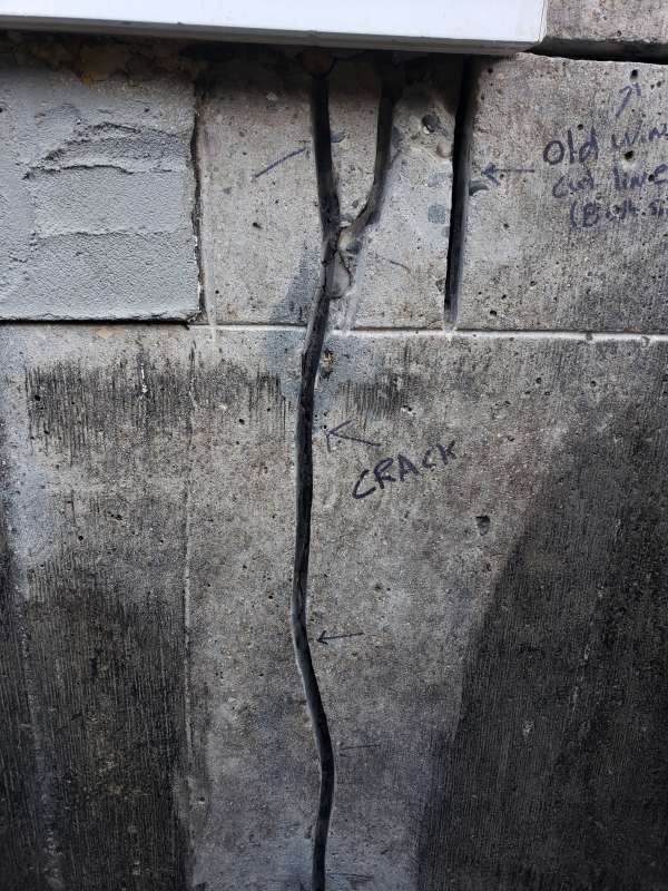A common vertical crack repair usually involves the excavation of the crack area (approx. 6ft long x 3ft wide, and down to the footing), wall cleaning and preparation of the individual crack, sealing the crack with an epoxy or polyurethane injection, then finally installing a minimum 3ft wide (or greater) waterproof membrane over the entire crack surface area. Supportive final sealing products are then used for the exterior of the repaired area. The excavated area is backfilled and first grading completed. A detailed photo USB drive of the repair work is supplied to all customers.