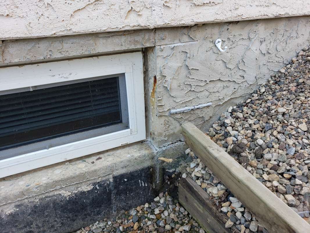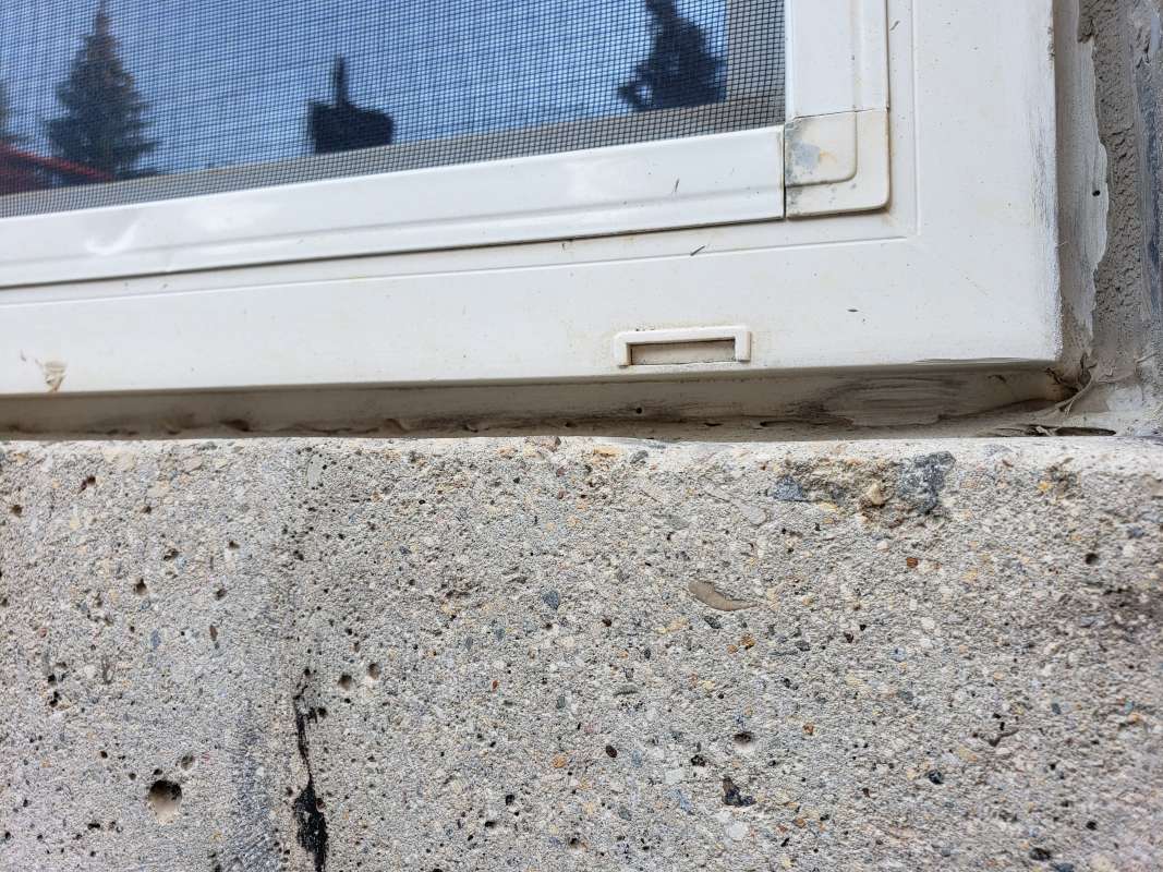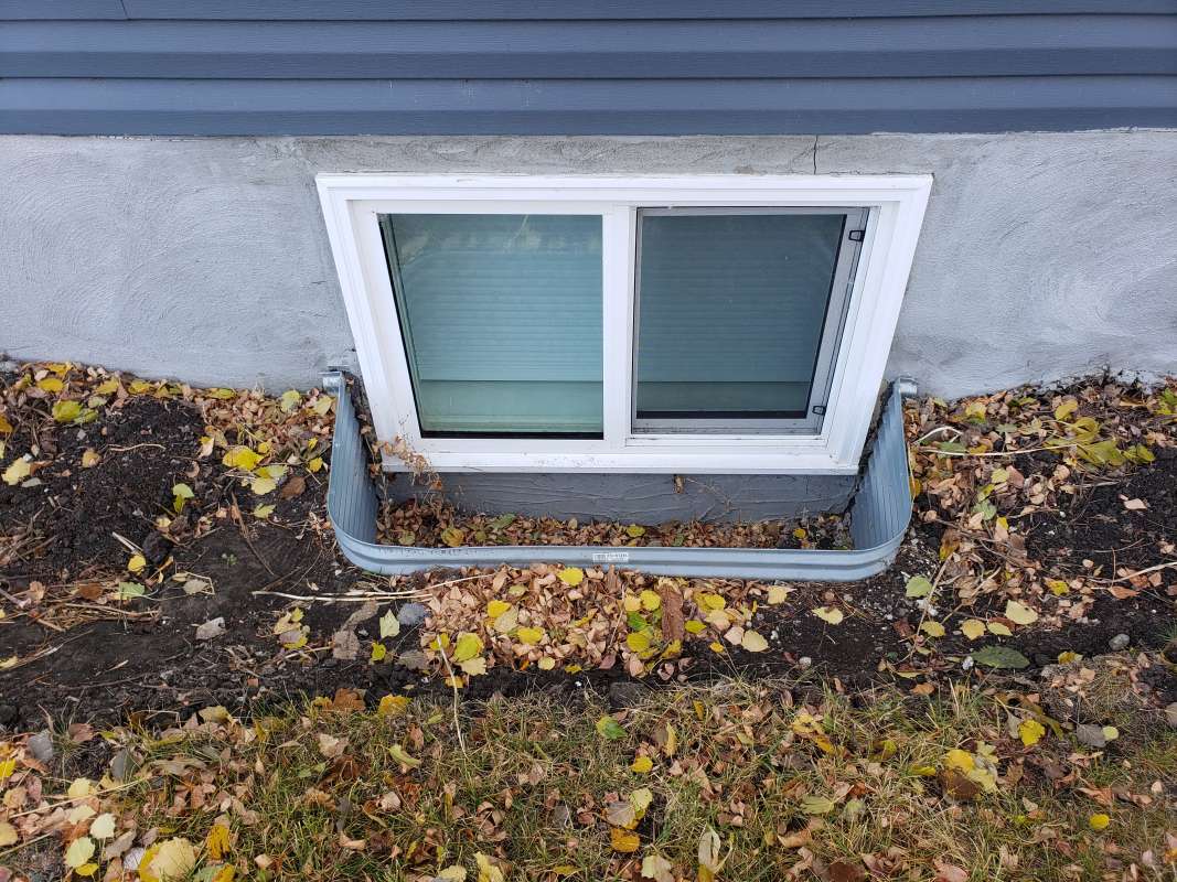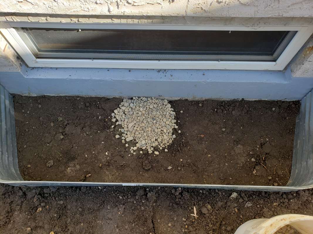 One of two problems occurred, First, the vertical drain stack was not mounted to the foundation and simply moved during the backfill process. It no longer was in place to drain over the foundation weeping-tile. Secondly, the practice of filling the vertical window-well drain stack with crushed rock was thought to serve two purposes: it prevented the vertical drain stack from collapsing (crushing) during the backfill process, and it slowed the infiltration of dirt and sediment into the system. This construction logic has failed in our cold Canadian prairie climate. Aside from the sediment slowly making its way into the pours of the crushed rock and solidifying, the spring snow melt adds further complications. The melting snow would travel through the rock in the vertical drainage pipe, then freeze due to the cold ground temperature. The porous rock simply turned into a solid mass and window-wells started accumulating surface water. The windows themselves would fail to drain properly and then start to leak water into the basement living space.