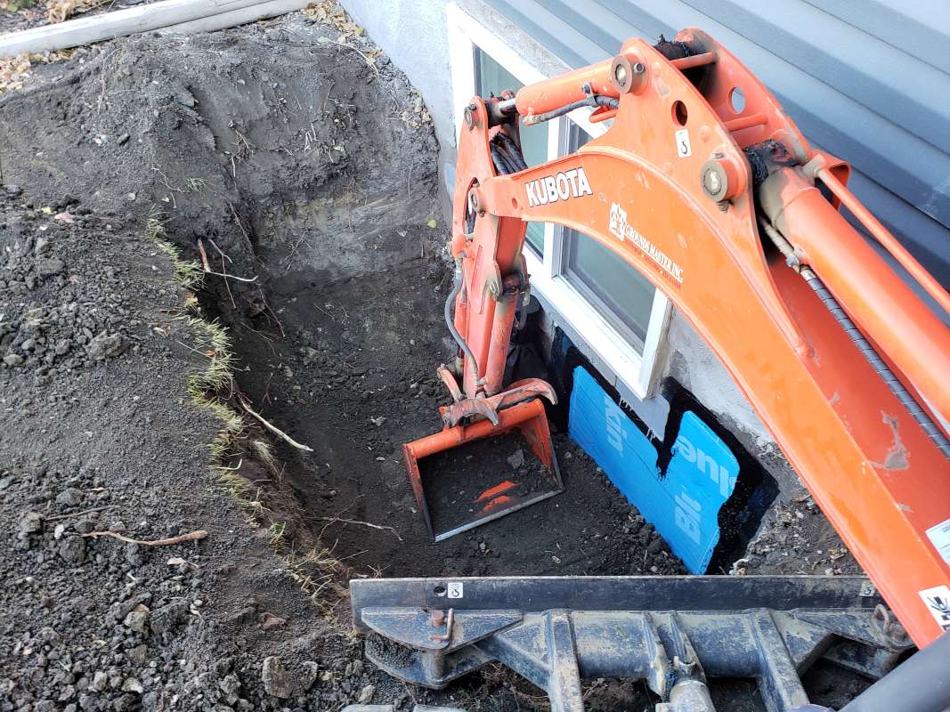 After every spring snow melt or heavy rainstorm, does water accumulate at the bottom of your interior basement foundation wall? Do you have a structurally unsound concrete, cinderblock, or wood foundation wall that is allowing water in? Maybe you have a basement window-well that fills in with water and causes your window to leak water into your basement? Are you building a new house and find yourself weighing the benefits of waterproofing your basement foundation rather than just damp-proofing it. Regardless of what your basement foundation issues are, Grounds Master Inc. will help you develop viable a solution(s) so that you can confidently move forward in the repair process.