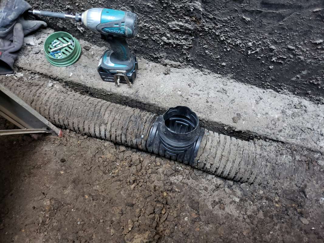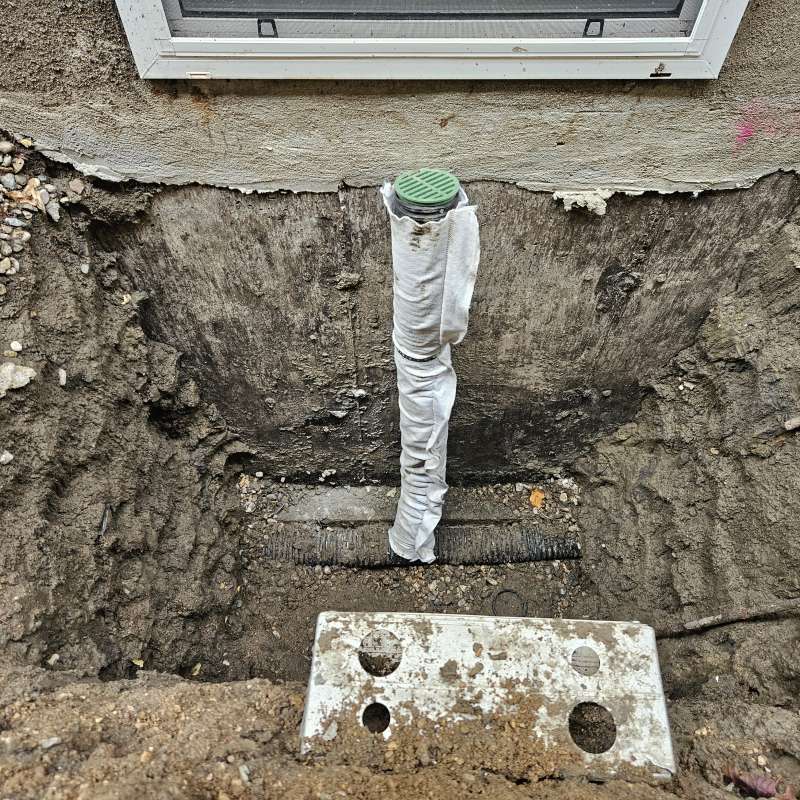The current industry standard for residential building construction includes the installation of weeping-tile around the foundation footing, vertical drain stacks hung at every basement window, and a sump-pit for the water to drain into. In the past few years, some new homes have begun developing a window-well drainage problem with their window-well drain stacks. At the time of construction, these vertical drain stacks were simply hung over-top of the foundation weeping-tile, the drain pipe filled with crushed rock, then the area got back-filled.