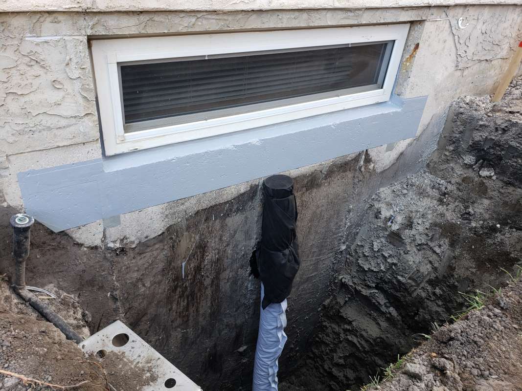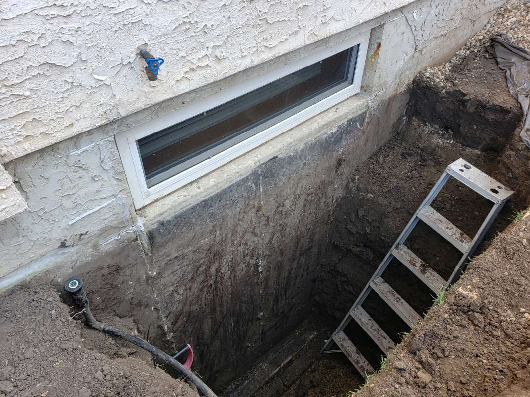 In the Saskatoon area, the current industry standard for new residential building construction includes the installation of weeping-tile around the foundation footing (bottom of the basement), vertical drain stacks at every basement window, and a sump-pit for the water to drain into. When one or more walls are excavated and waterproofed on an existing (older) foundation wall that predates weeping-tile, the additional installation of a weeping-tile system should always be considered.