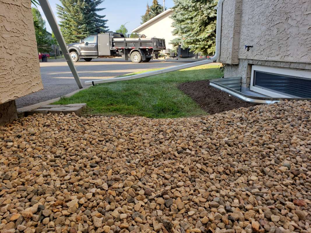 Grounds Master Inc. has always taken an alternative approach to the installation of window-well drainage, to which point, others have eventually followed suit. Window-well drainage pipes have always been “T-ed” into the working weeping-tile system and never filled with any drainage material which can slow down the flow of water. All window-well drainage pipes are secured to the wall and have drain covers and a geotextile clothe over them to filter out the soil sediment.
