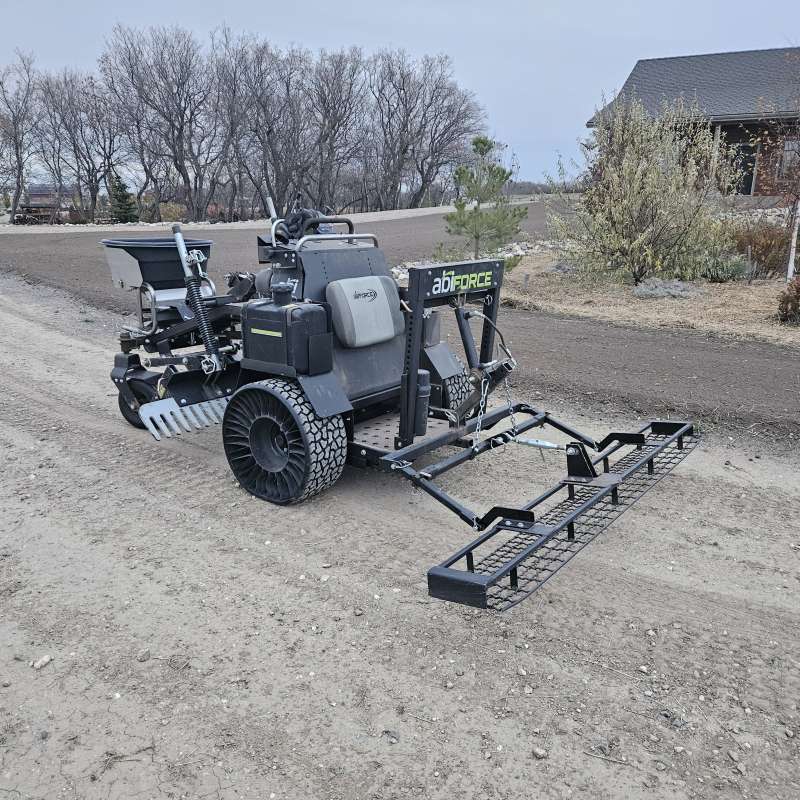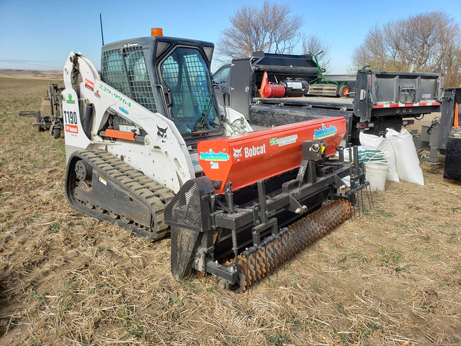 - Can the drill seeder access the job site? The drill seeder is over 8ft wide, is mounted on a large track bobcat, and maneuverability inside the job site is essential.