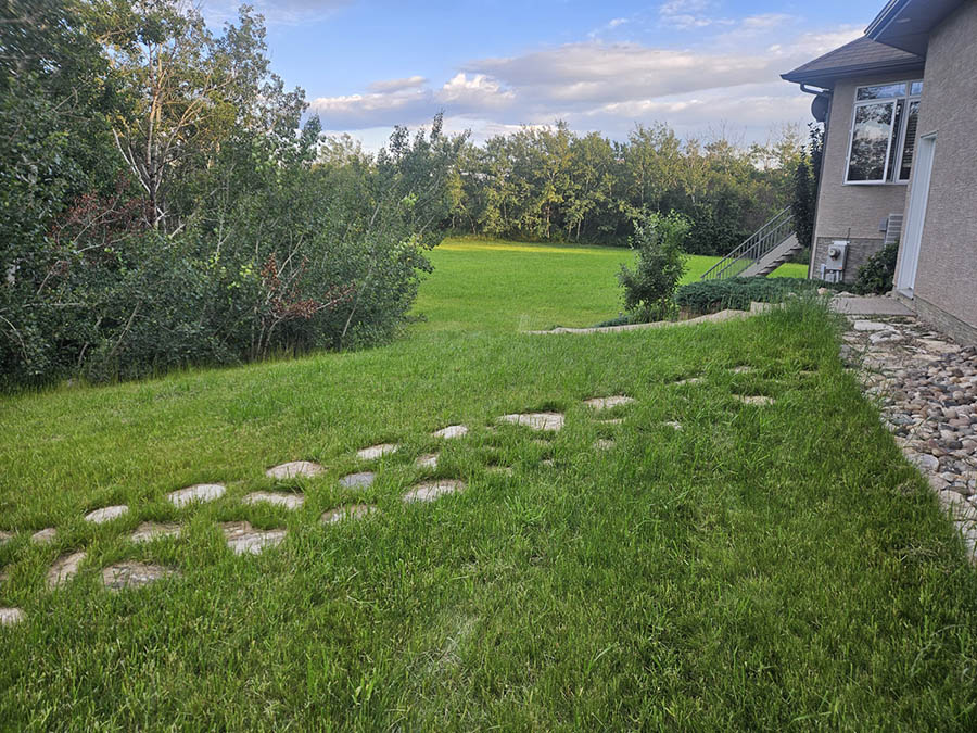 DO NOT USE WEED KILLER ON A NEW LAWN. This is very serious. Weed control products can burn or kill new grass in the first 1 -2 seasons. All soil contains weed seeds. The drill seeder and manufacturer’s seed do not. Weeds always germinate quicker than grass, however grass will choke out weeds as it becomes established. An established lawn and a proper fertilizer program will choke out many of the remaining weeds. If you have questions about any of the products required for a healthy lawn, contact Grounds Master Inc. or any of the many qualified lawn care firms available in the Saskatoon area.