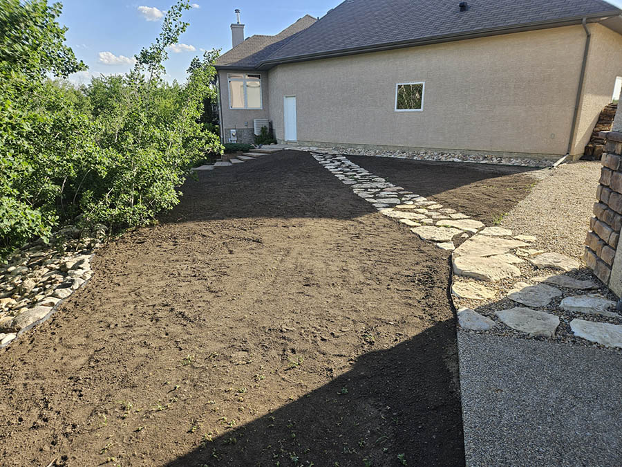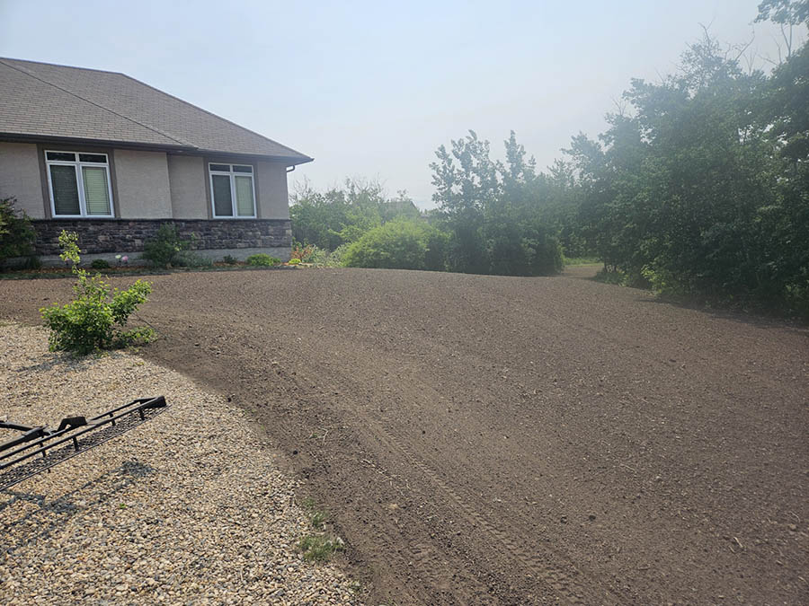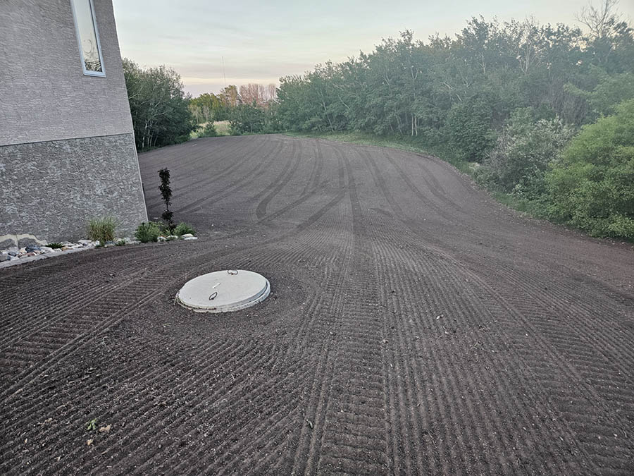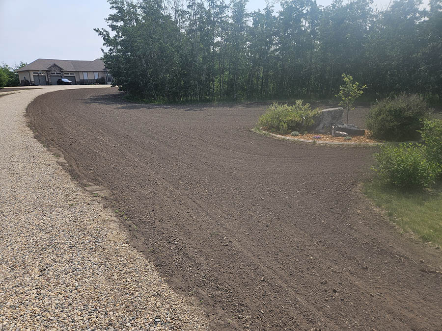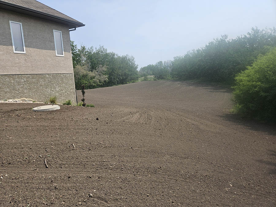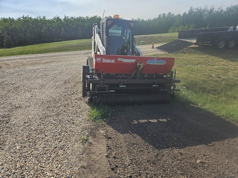 One of the most critical aspects in grass development is the ground (soil) preparation. A properly landscaped site must have an adequate amount of topsoil (free of lumps and rocks) which has been leveled / graded, and packed. The top ½ – ¾ inch of soil should be raked loose in order to provide a seed bed for the newly planted grass seed. The soil preparation for sod is much the same for grass seed, and with it, a great amount of machine work and labour is required. Drill seeding can expedite this process. The topsoil, leveling, and grading should still be completed as indicated above, but much time is saved in the elimination of having to pack and then rake loose the soil. By design, the drill seeder’s front rollers crush small-to-medium size lumps and press down small stones to form a firm and well-prepared seedbed.