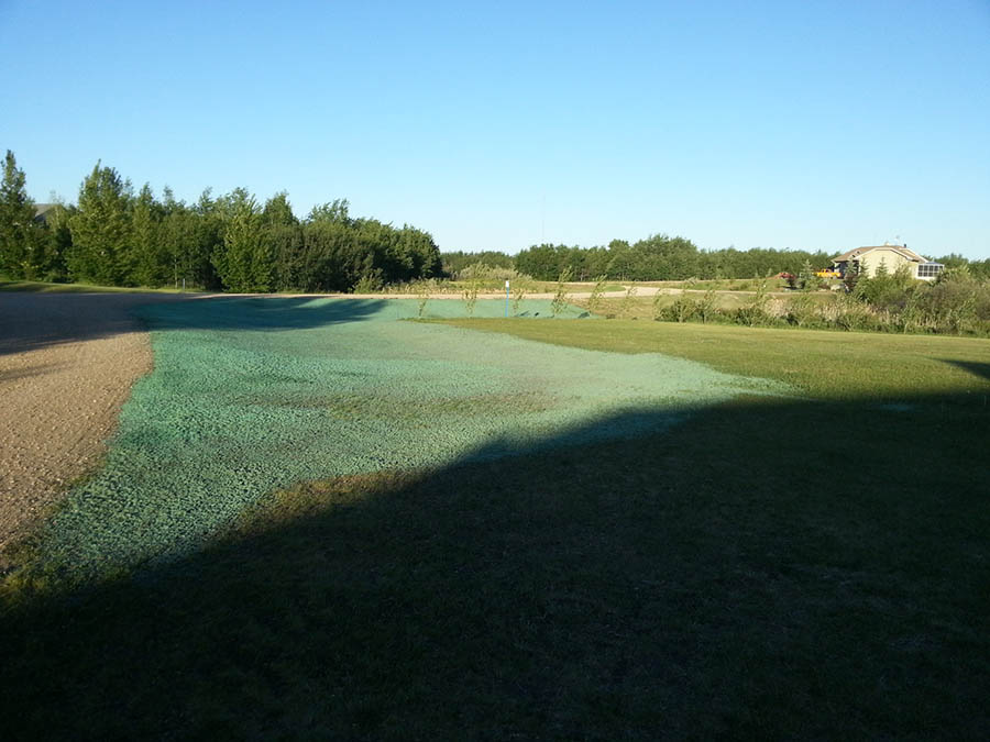 DO NOT USE WEED KILLER ON A NEW LAWN. This is very serious. Weed control products can burn or kill new grass in the first 1 – 2 seasons. Assume that all soil contains weed seeds. The hydroseed, or hydro-mulch slurry, does not. Weeds always germinate quicker than grass, however grass will choke out weeds as it becomes established. An established lawn with a proper fertilizer program will choke out most of the remaining weeds. If you have questions about any of the products required for a healthy lawn, contact Grounds Master Inc. or any of the many qualified lawn care firms available in the Saskatoon area.
